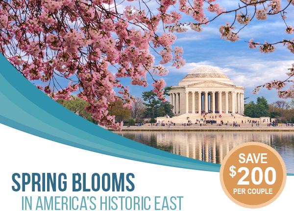 | 7 Days • 9 Meals: Join the annual celebration of spring with the beautiful cherry trees that line the Nation’s Tidal Basin and experience the flowering magnificence of historic Longwood Gardens. |