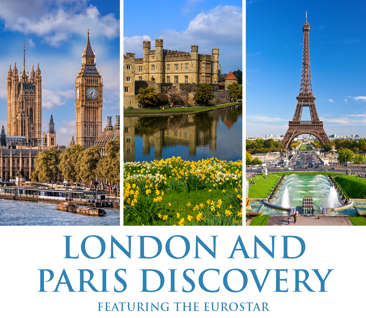 | 9 DAYS • 9 MEALS: Enjoy two panoramic city tours of London and Paris, an excursion to Leeds Castle and the Cliffs of Dover and learn about life in a château at Château de Vaux-le-Vicomte. Visit the regal Palace of Versailles on this 9 day tour of London and Paris. |