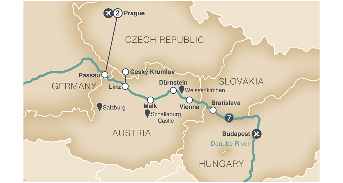 11 DAYS • 21 MEALS: Experience the Danube River onboard an award-winning Emerald Cruises Star-Ship through four stunning countries. Explore fascinating ports of call with local English-speaking guides. Experience local culture, visit UNESCO World Heritage Sites, taste regional specialties and beverages and more on your seven-night cruise. During the two-night stay in the majestic city of Prague, included touring showcases its historic and picturesque sites.