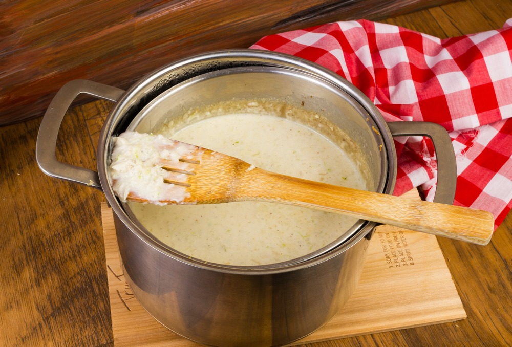 Reduce heat and add heavy cream, milk, Worcestershire sauce, paprika, cayenne, and dry sherry. Heat gently without boiling. If available, use a double-boiler technique to avoid scorching the soup.