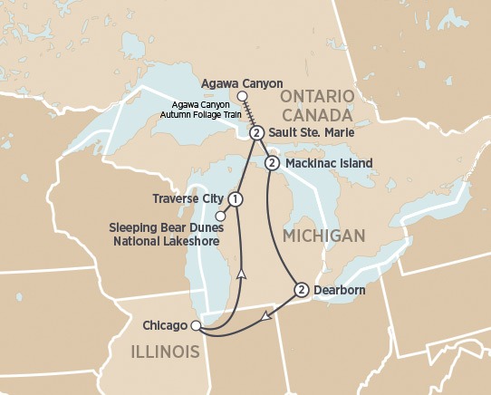 8 DAYS • 12 MEALS Relax and enjoy the carefree lifestyle of Mackinac Island in Autumn. Ride the Algoma Central Railway into scenic Agawa Canyon, visit the heart of the Ford Motor Company in Dearborn and spend two nights at Grand Hotel, the crown jewel of Michigan.